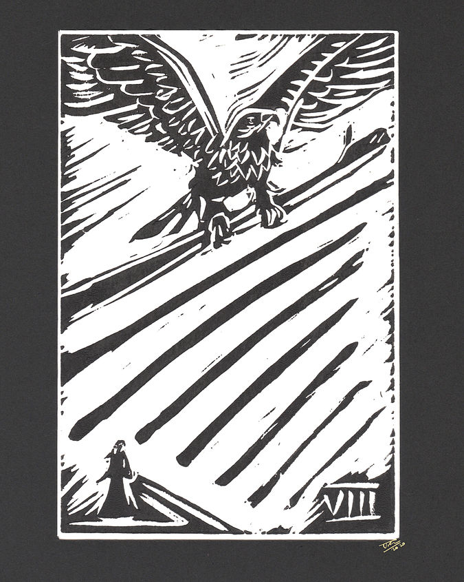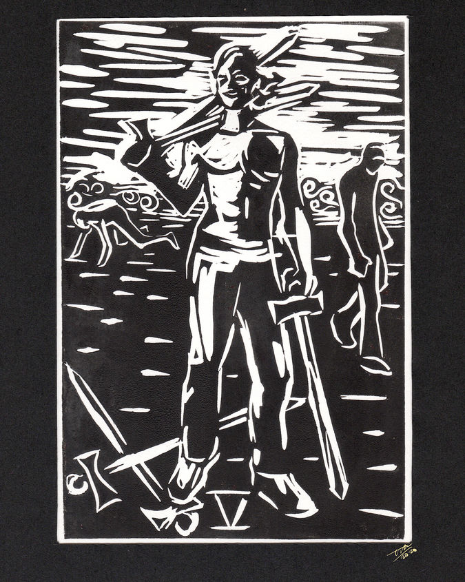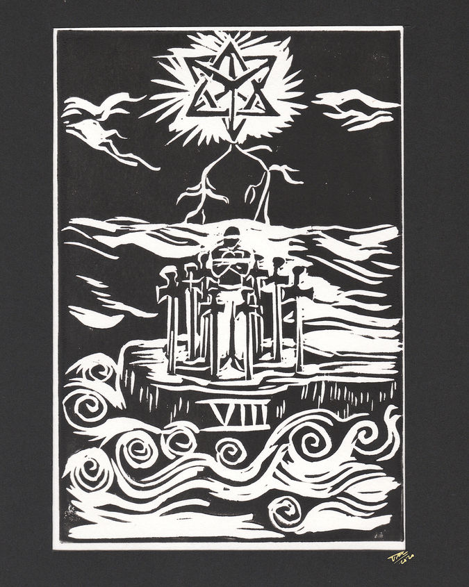Over a period of 3.5 months, carving almost daily, I received a vision for each of the 78 cards, and whilst the Reiki space remained open I focused the energy into a lino mould.
